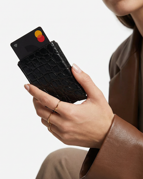 Croco Noir Core 01 Card Holder Side Slider Mechanism RFID/NFC Blocking